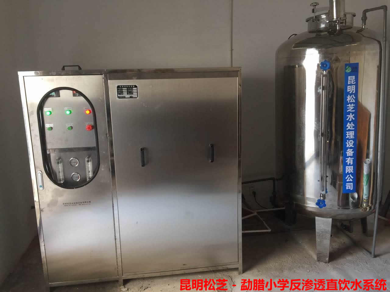 勐臘學校密封式0.5T/H反滲透設備 + 預處理系統 + 飲水平臺